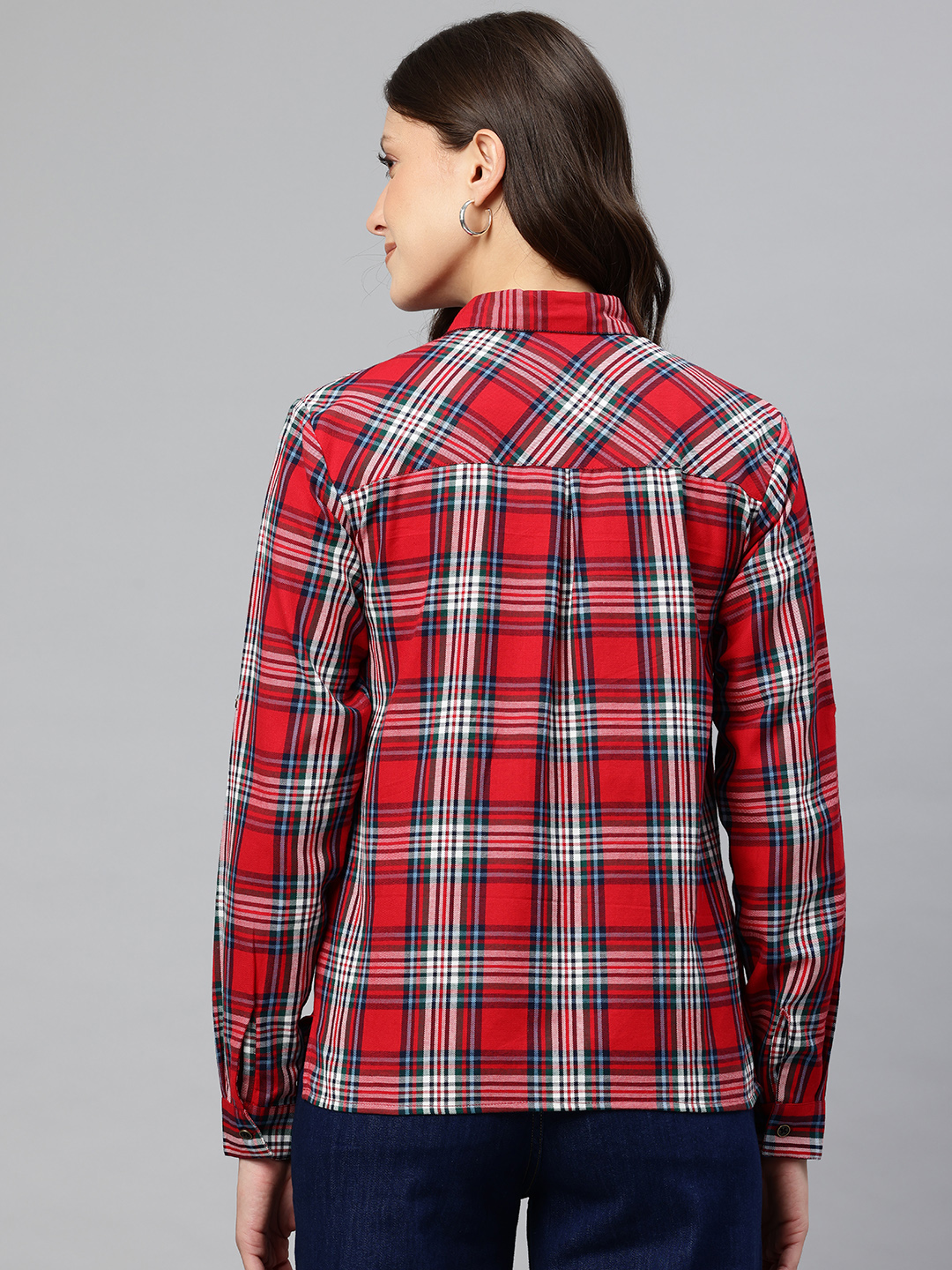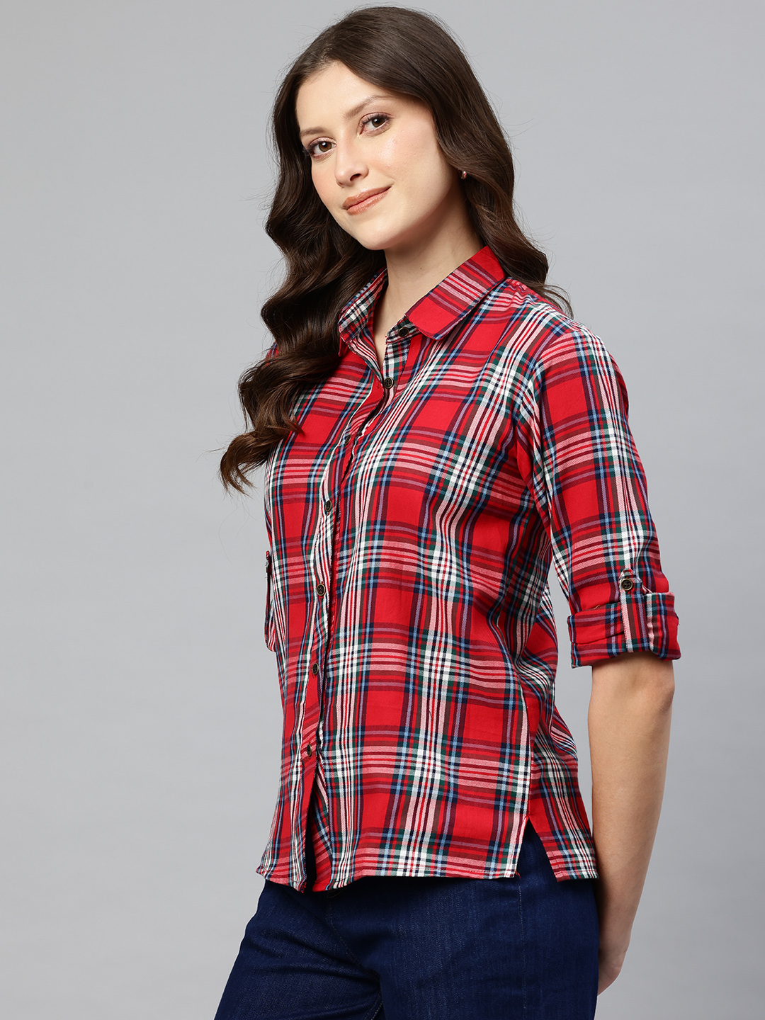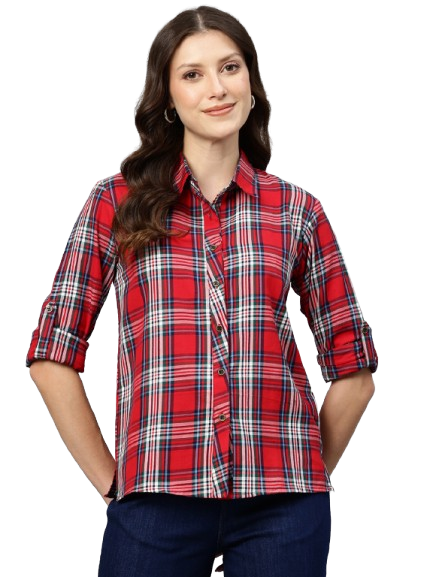 Elevate your casual wardrobe with our Women Regular Fit Checked Short Shirt. This trendy and versatile piece is perfect for a laid-back day out or a casual office look. With its timeless checkered pattern and comfortable fit, this shirt is a must-have for every fashion-forward woman This Classic checkered pattern available in multiple color options.Regular fit and Full-length sleeves that can be rolled up for a relaxed look. Traditional shirt collar that adds a touch of sophistication.Pair it with distressed jeans and sneakers.Short length that pairs perfectly with high-waisted jeans, skirts, or shorts Approx Length: 23″. Sleeve: 23″ Fabric: Cotton. Care Instructions: Seperate first wash. Wash warm – Cold rinse normal spin – Iron Medium heat. Premoisten cloth before iron.